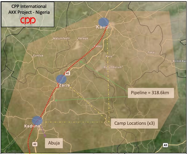 AKK项目为天然气管道建设项目,项目起点为尼日利亚中部Ajaokuta,途径Kaduna最终到达北部重要中心城市Kano,管线全长约614公里,业主为尼日利亚国家石油公司(NNPC)。中国石油天然气管道局国际公司(CPP International)和尼日利亚当地公司Brentex Petroleum Services Limited 组成的联合体公司BRENTEX CPP中标AKK项目第2标段,干线全程318.66公里,项目总长三年。